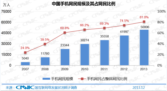 2014年第33次中國互聯(lián)網(wǎng)絡發(fā)展狀況統(tǒng)計報告,從數(shù)據(jù)中我們看出,截止到2013年12月份,中國的手機網(wǎng)民已經(jīng)達到5億人,和前一年相比增長了8009萬人。由此可見,中國的手機網(wǎng)民在逐年增加,并且呈穩(wěn)定增長的趨勢?,F(xiàn)在不管在什么公共場合,隨處可見的就是低著頭拿著手機在上網(wǎng)的情形,這就是我們所說的手機控。